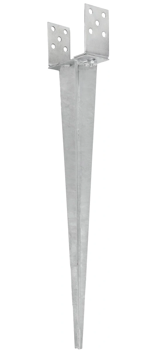 Podstavce stĺpov - palisády na ukotvenie drevených stĺpikov priamo do zeme. Vybavený nastaviteľným rozstupom ramien pre drevené stĺpy rôznych šírok. Špeciálny žiarovo zinkovaný povlak s hrúbkou min. 20um dokonale chráni pred koróziou.