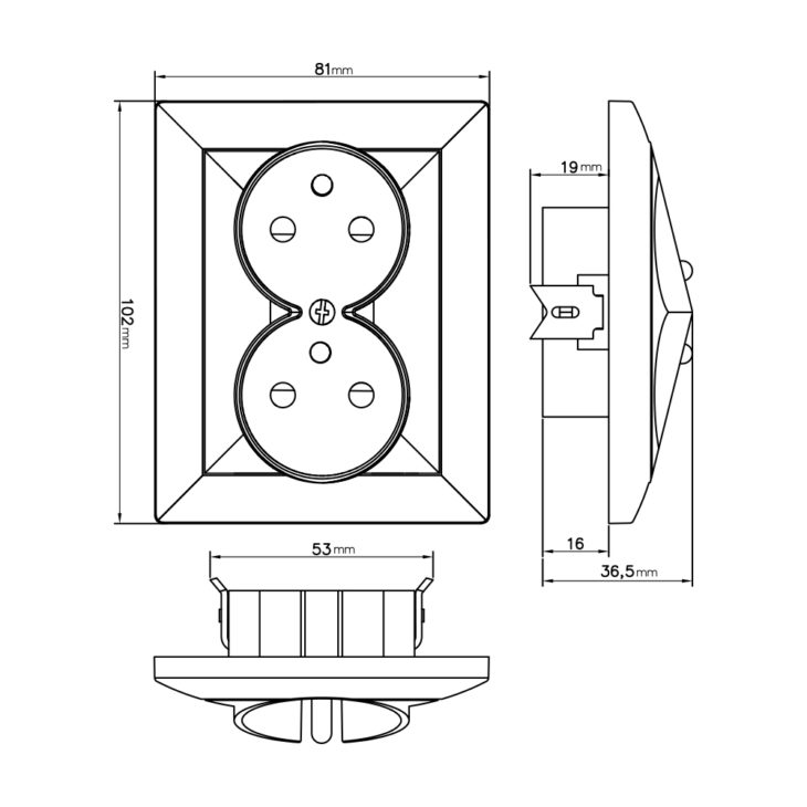 Dvojzásuvka pod omietku českého typu , pre zapustenú montáž. Dvojzásuvka PT-6PW Abex pochádza zo série Perła.