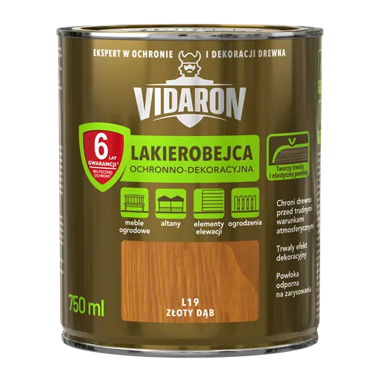 Ochranná a dekoratívna lazúra Vidaron je vysokokvalitný výrobok, ktorý vytvára na dreve odolný a pružný náter odolný voči oderu. Účinne chráni drevo pred slnečným žiarením (UV), vodou, snehom a mrazom pri zachovaní prirodzenej kresby dreva Poskytuje 6-ročnú záruku účinnej ochrany.