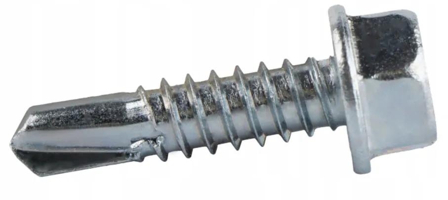 Samorezné, samorezné skrutky z povrchovo kalenej uhlíkovej ocele, elektrolyticky pozinkované, s hrotom vŕtania GT 6 (vrták 6 mm), jemným závitom a šesťhrannou hlavou, bez podložky.